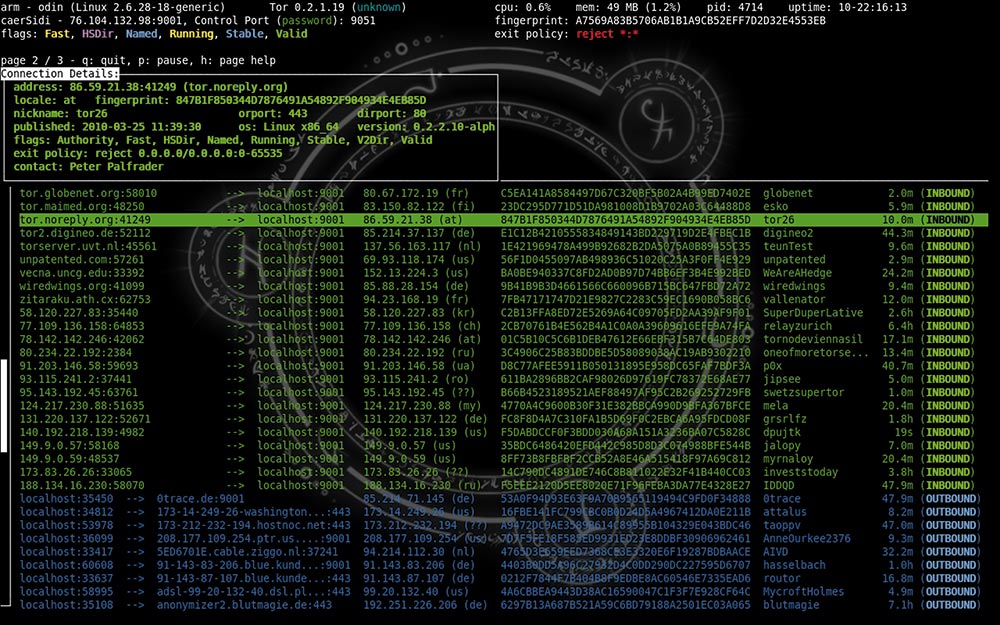 Screenshot of Tor relay connection listing. Courtesy of Tor Network.