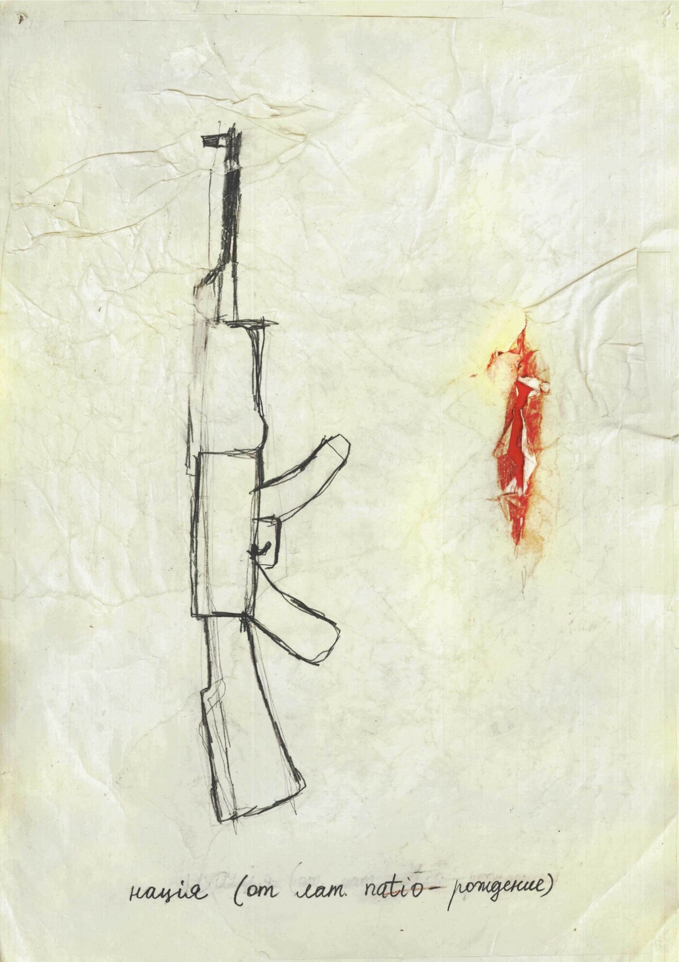 Dana Kavelina, nation (from Latin: giving birth) (from Communications. Exit to the Blind Spot), 2019, graphite and colored pencil on paper, 16.5 × 11.75 inches.